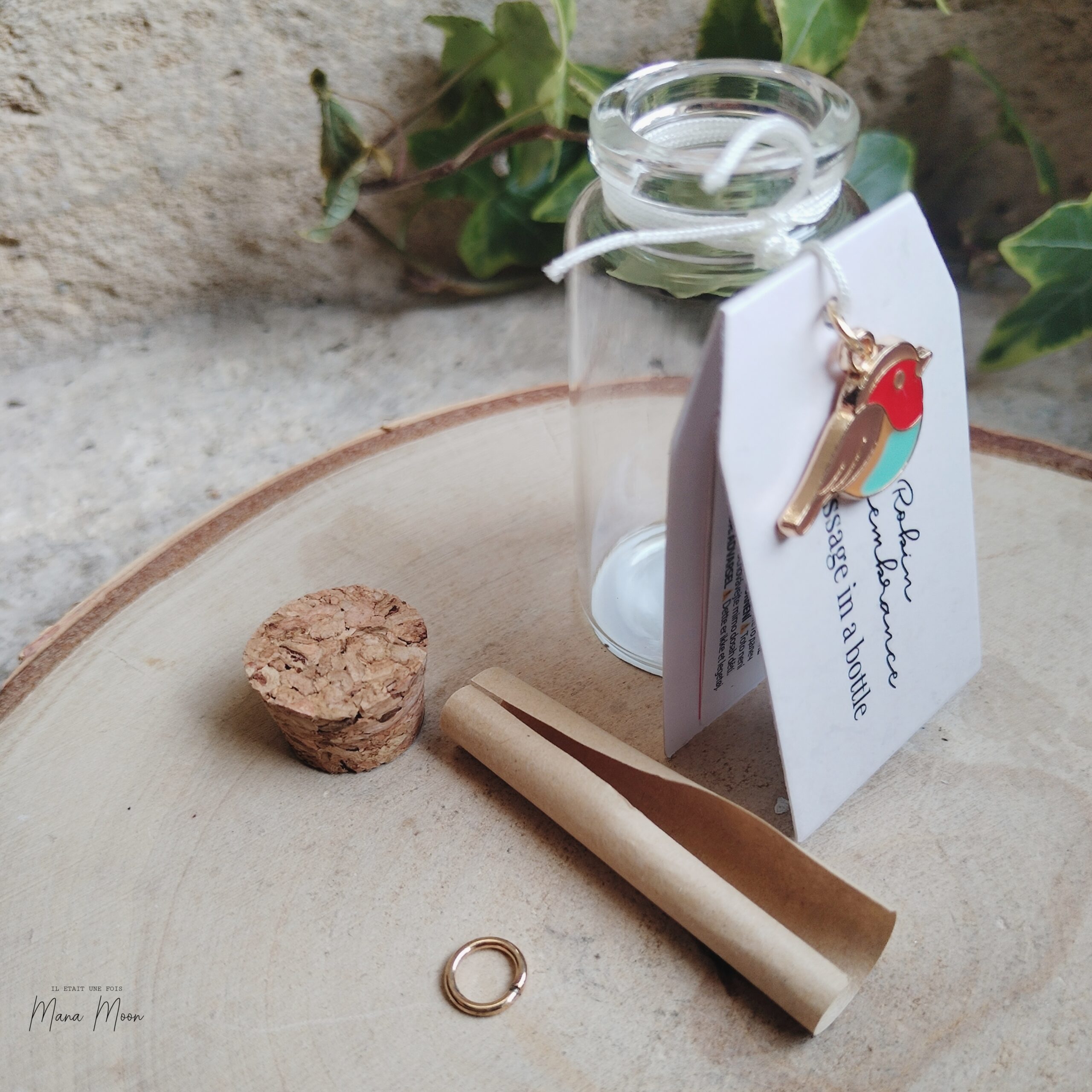 🐦💌 Fiole à Message Rouge-Gorge – Souvenir, Douceur et Message du Cœur